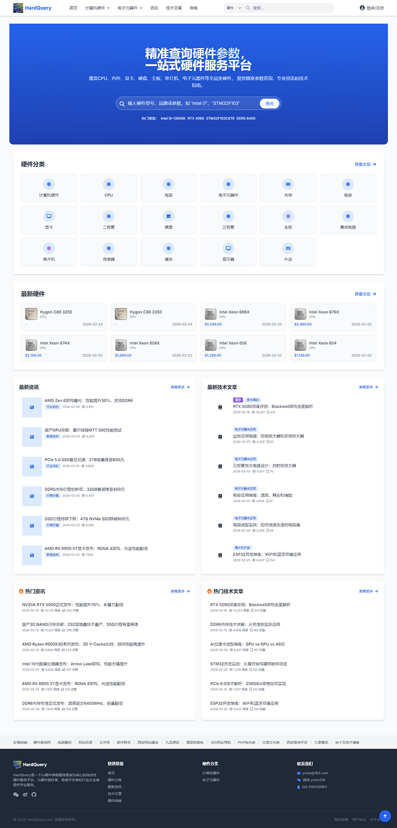 HardQuery是一個(gè)以硬件參數(shù)精準(zhǔn)查詢?yōu)楹诵牡木C合性硬件服務(wù)平臺(tái),為硬件愛好者、極客開發(fā)者和行業(yè)從業(yè)者提供專業(yè)服務(wù)。覆蓋CPU、內(nèi)存、顯卡、硬盤、主板、單片機(jī)、電子元器件等全品類硬件, 提供精準(zhǔn)參數(shù)查詢、專業(yè)資訊和技術(shù)指南。