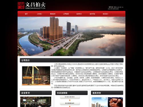 江西文昌拍賣有限公司該網(wǎng)站屬于拍賣、典當(dāng)行業(yè)紅色,黑色系風(fēng)格