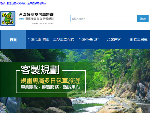 臺(tái)灣好朋友包車旅游該網(wǎng)站屬于風(fēng)景、旅游行業(yè)綠色,藍(lán)色系風(fēng)格