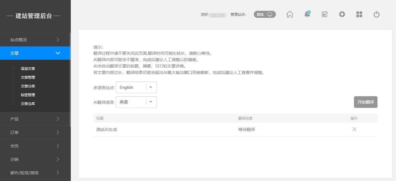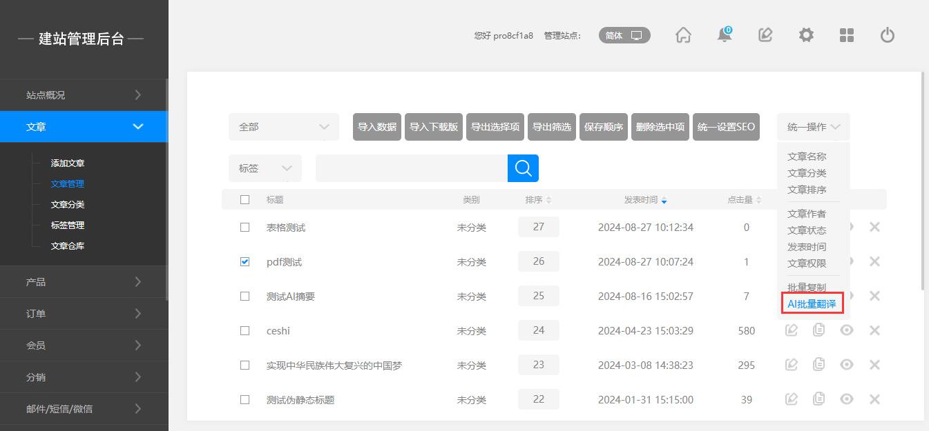 后臺(tái):文章管理—勾選文章—AI批量翻譯