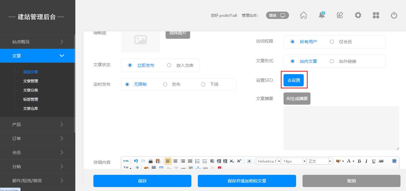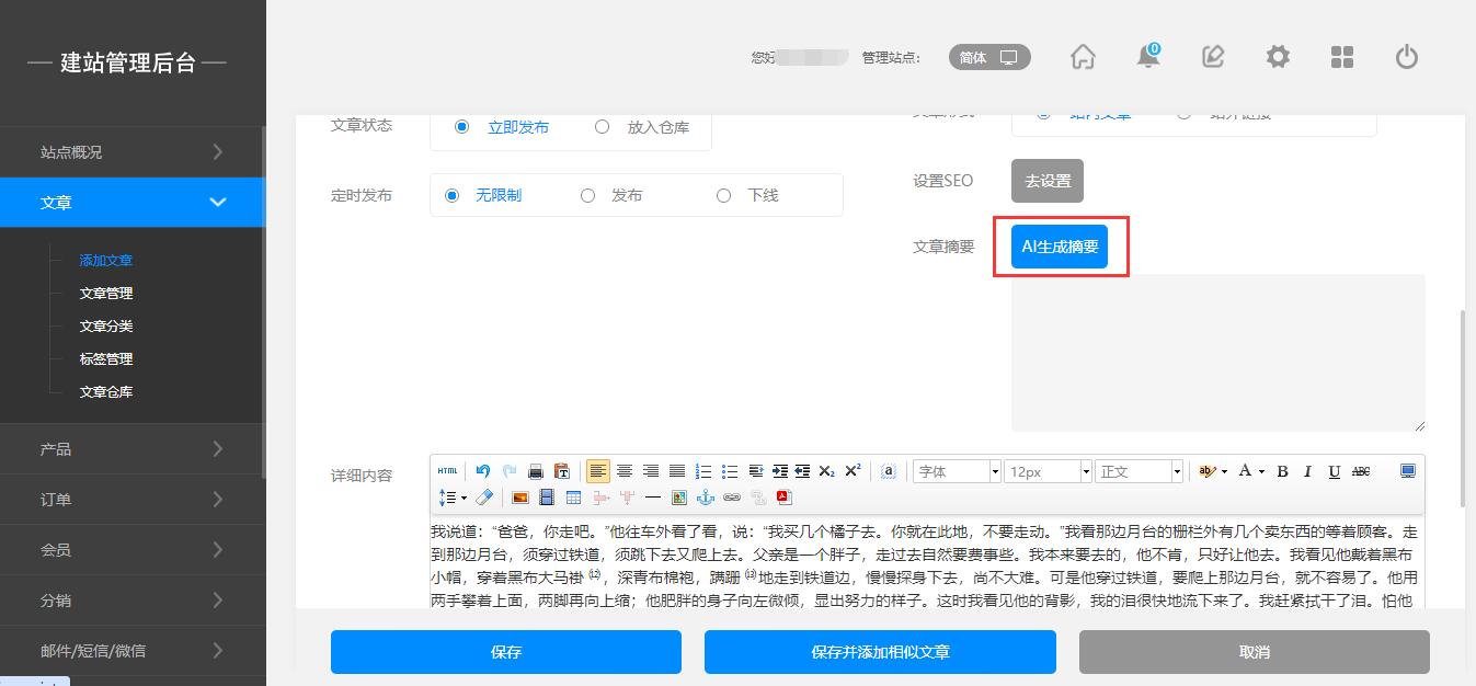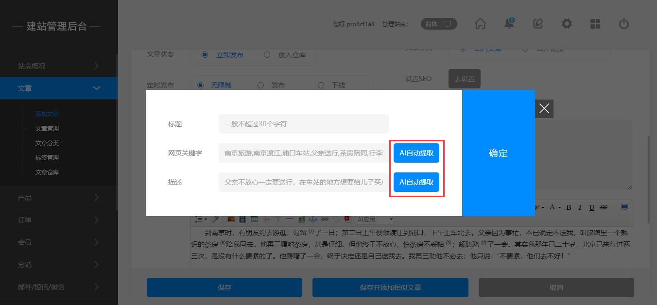 后臺(tái):添加文章—SEO設(shè)置—AI自動(dòng)提取