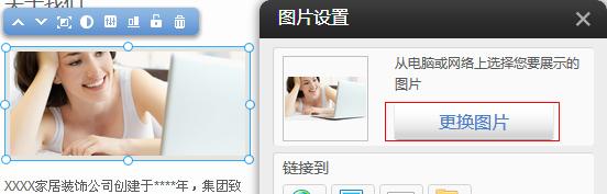 點擊“更換圖片”, 系統(tǒng)會彈出圖片文件管理器, 然后選擇新的圖片進行替換即可,步驟與上面提及的“添加新的圖片模塊”是一致的。