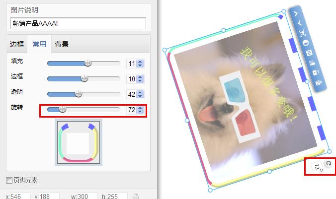 旋轉:圖片相對于頁面的角度,可以為0-359°。