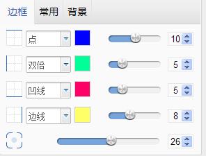 邊框:我們可以看到“邊框”數(shù)值是10,事實上,只要我們不在這個位置做調整,系統(tǒng)會默認剛才在“邊框”頁面所做的設置。但如果要統(tǒng)一四條邊線的磅數(shù),可以直接在這里對4條邊一起調整;