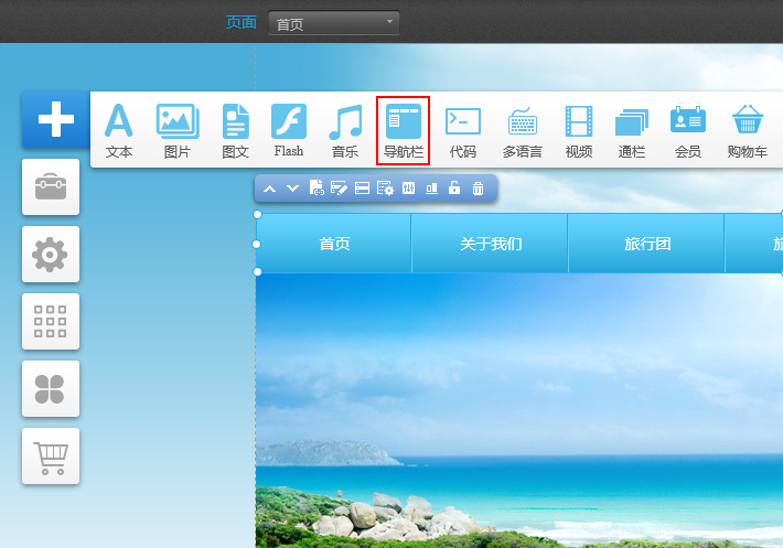 導(dǎo)航條添加成功后,如果不喜歡默認(rèn)的樣式或者顏色,您可以對(duì)這些進(jìn)行調(diào)整。導(dǎo)航條的工具條上有多個(gè)功能,我們會(huì)重點(diǎn)說(shuō)一下第3個(gè)至6個(gè)功能: