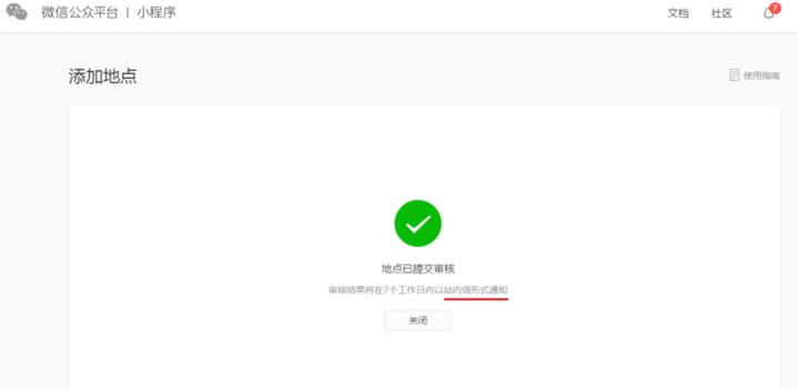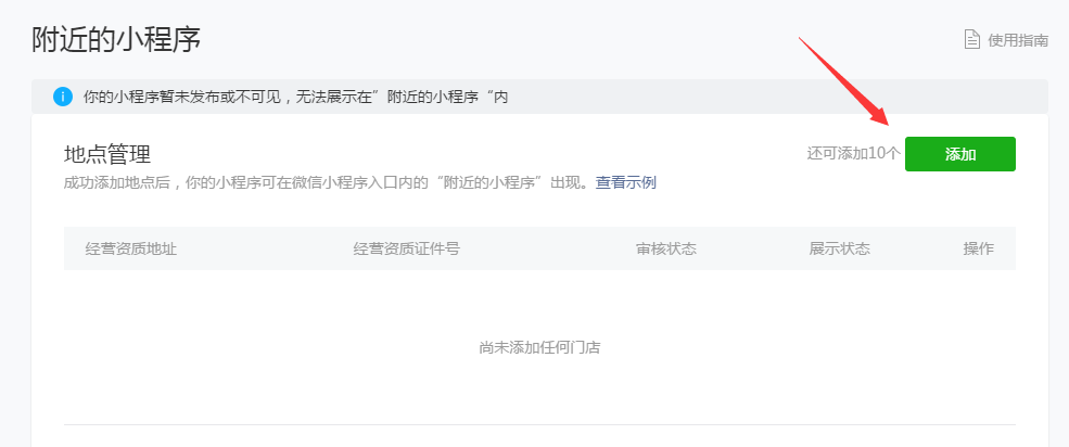 ④.審核通過以后,就可以在您填寫的地址的一定范圍內(nèi)出現(xiàn)在附近的小程序中了