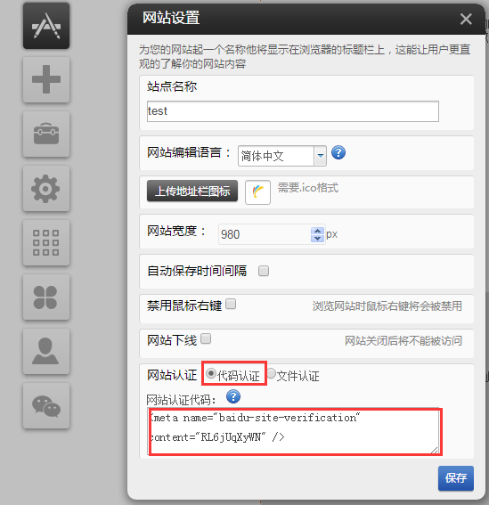 在設(shè)置-》網(wǎng)站設(shè)置-》網(wǎng)站認(rèn)證代碼中放置代碼后點(diǎn)擊驗(yàn)證