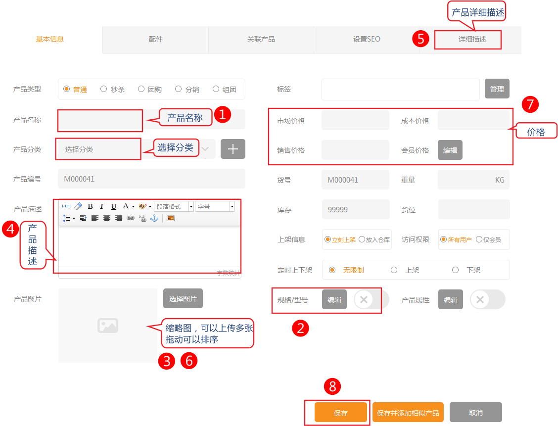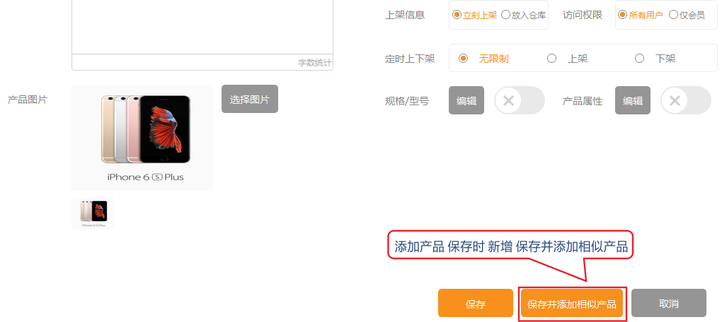 B .添加產(chǎn)品 保存時 新增 保存并添加相似產(chǎn)品
