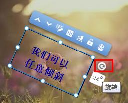 我們所有的模塊均支持旋轉,通過旋轉, 您可以創(chuàng)造出更個性化的網(wǎng)頁效果, 下圖為一個文字模塊在一張圖片上的旋轉效果展示。
