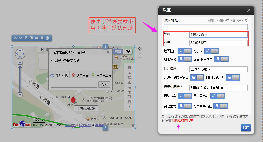 另外還可以使用經(jīng)緯度來定位,填寫了經(jīng)緯度就不用再填寫默認(rèn)地址。