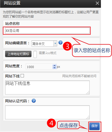 2.錄入您的站點名稱-保存