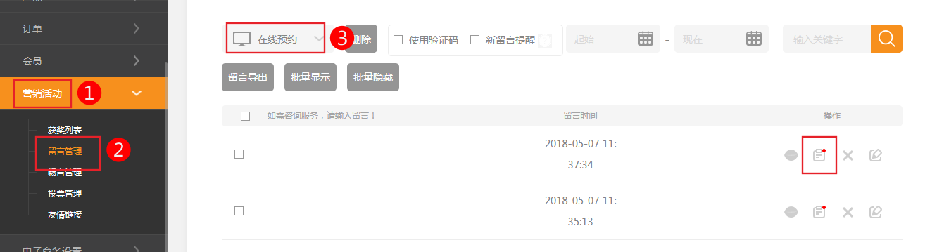 也可以直接在 網(wǎng)站后臺(tái)-》營(yíng)銷活動(dòng)-》留言管理-》點(diǎn)擊協(xié)議進(jìn)行添加