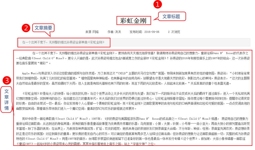 3、下面是一篇簡單的文章在網(wǎng)頁展示