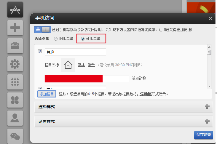 基礎(chǔ)版和標準可通過選擇新版類型體驗到營銷版手機訪問效果