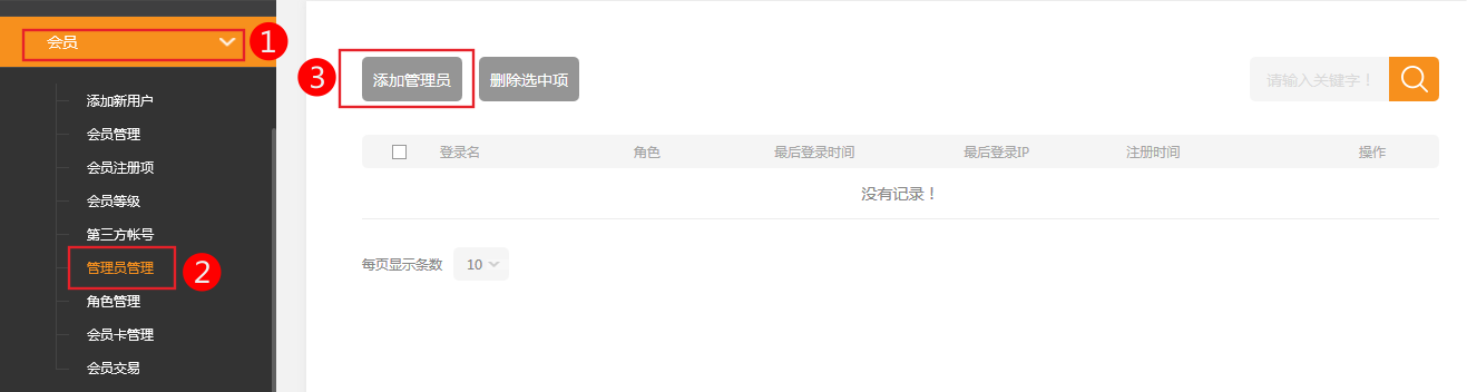 依次點(diǎn)擊會(huì)員->管理員管理->添加管理員