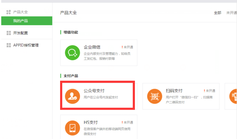 6,在商戶平臺(tái)商品大全中檢查 公眾號(hào)支付是否開啟。