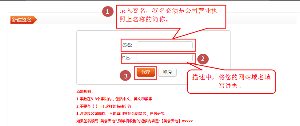 1.網(wǎng)站后臺設(shè)置完成之后需要在短信管理平臺進行短信格式以及簽名的添加審核