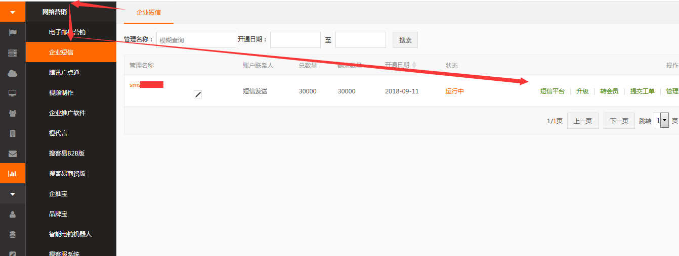 1.依次點擊 網(wǎng)絡(luò)營銷--》企業(yè)短信-》管理-》查看登陸密碼。