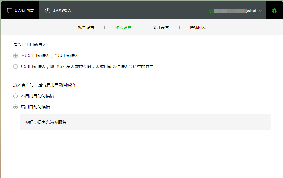 自動接入:當待接入的對話太多時,可以在設置/接入設置中,開啟自動接入