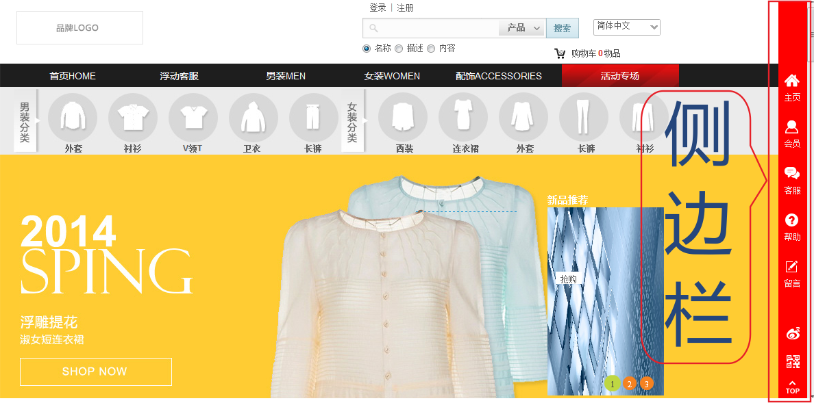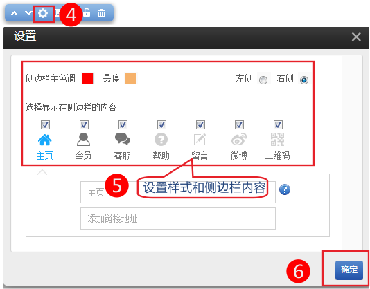 側(cè)邊欄內(nèi)容支持主頁、會(huì)員、客服、幫助、留言、微博、二維碼顯示在網(wǎng)站左側(cè)或右側(cè)。