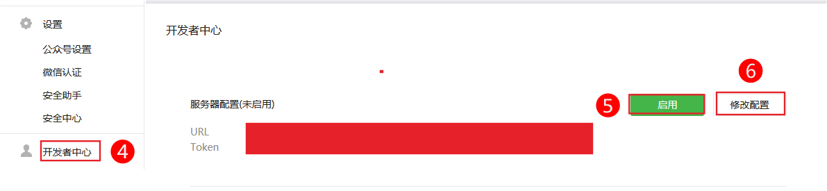 2. 點(diǎn)擊開發(fā)者中心綁定url和token。
