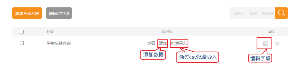 添加后可以可以在列表中看到,然后點擊添加錄入數(shù)據(jù),或通過csv批量導入