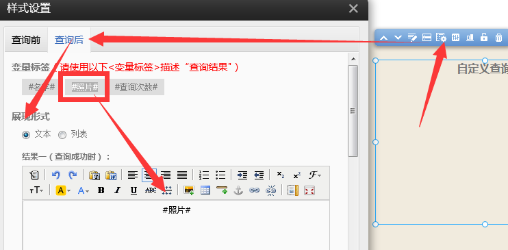 3、設置查詢后的樣式為文本、并錄入圖片字段的變量標簽如下圖