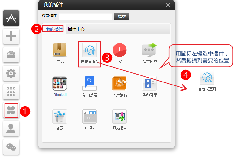 先在網(wǎng)站編輯界面 插件中心拖拽 自定義插件到頁面中