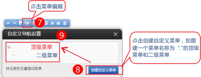 2.在導(dǎo)航上方設(shè)置導(dǎo)航類型為自定義。