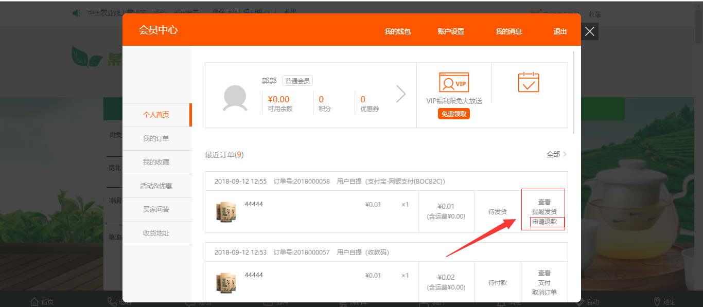 此功能需要客戶先在前臺(tái) 訂單管理中申請(qǐng)退款。然后管理員點(diǎn)擊退款即可 在線退款成功