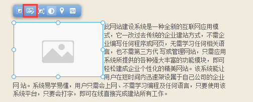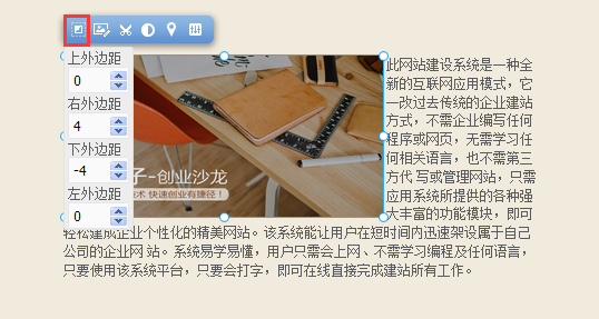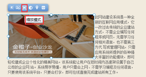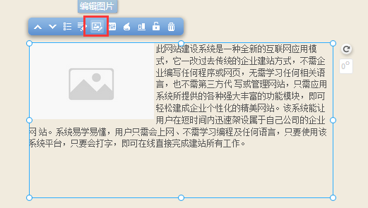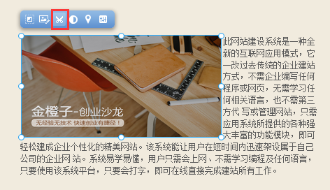 我們?yōu)榻ㄕ臼褂谜咛峁┝艘惶讏D片編輯插件, 在這里您只需要簡(jiǎn)單的操作, 即可對(duì)自己已經(jīng)上傳并添加至頁面上的圖片進(jìn)行編輯, 而無需使用專業(yè)化的圖片編輯軟件, 鼠標(biāo)選中圖片模塊并點(diǎn)擊模塊上方“圖片編輯”功能按鈕