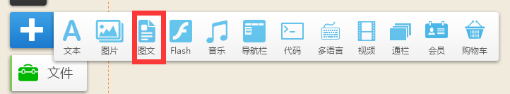 首先,點(diǎn)擊頁面左上角“添加”, 在彈出功能條中選擇“圖文”并拖至頁面中的任意位置: