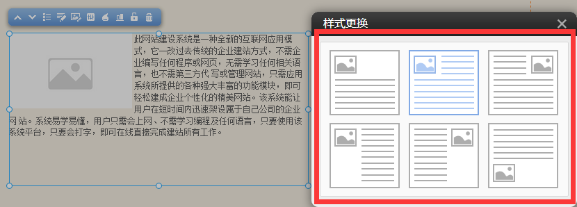 松手,該模塊添加成功,后續(xù)仍可以鼠標(biāo)拖動(dòng)該模塊進(jìn)行任意移動(dòng)。松手后,系統(tǒng)會(huì)自動(dòng)彈出“模式更換”選擇您需要的樣式: