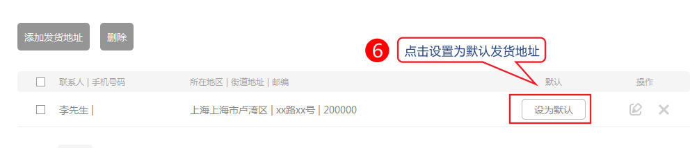3、將地址設(shè)置為默認(rèn)發(fā)貨地址。