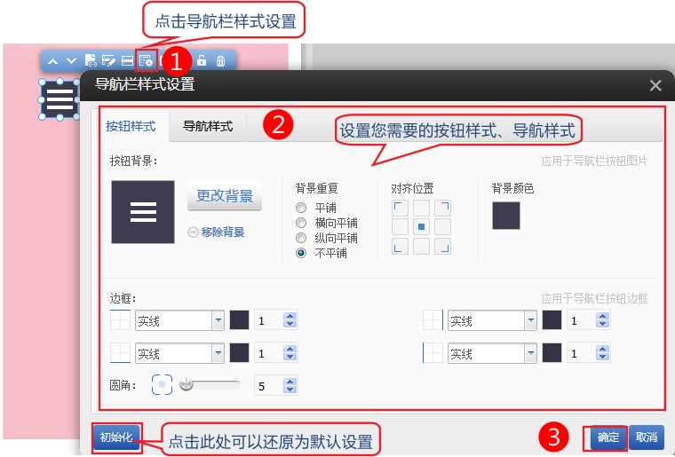 2、點擊設置,配置高級導航欄的樣式