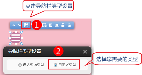 4、點擊導航欄類型設置可以設置為自定義類型