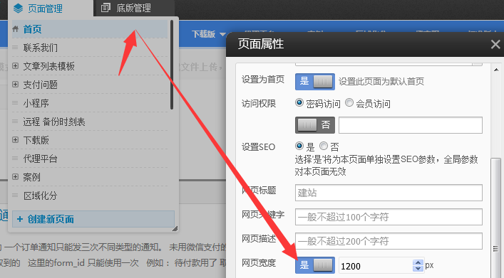 依次點擊設(shè)置 -》網(wǎng)站設(shè)置 -》設(shè)置寬度值即可。