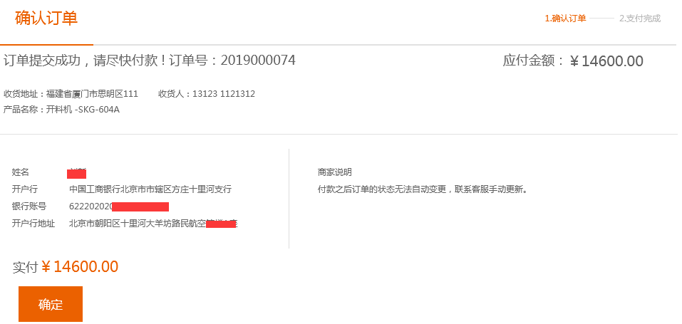 買家可以根據(jù)該頁面提供的信息直接付款,付款之后可以聯(lián)系賣家更改對應的訂單狀態(tài)