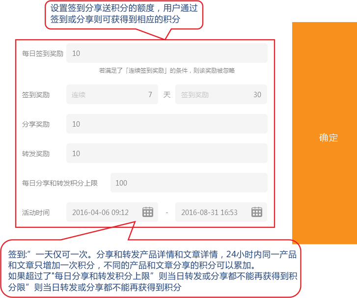 告訴用戶整個(gè)站內(nèi)有哪些方式可獲得積分,及積分有何作用,增加用戶粘性及趣味;