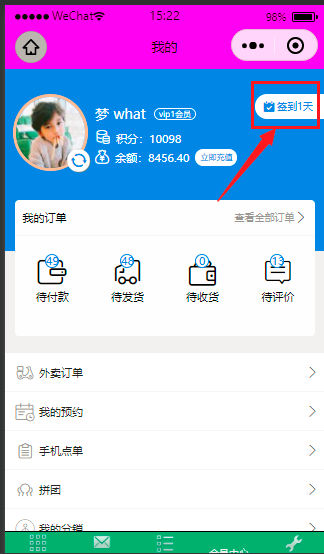 簽到 需要用戶登陸會(huì)員中心點(diǎn)擊 簽到送積分