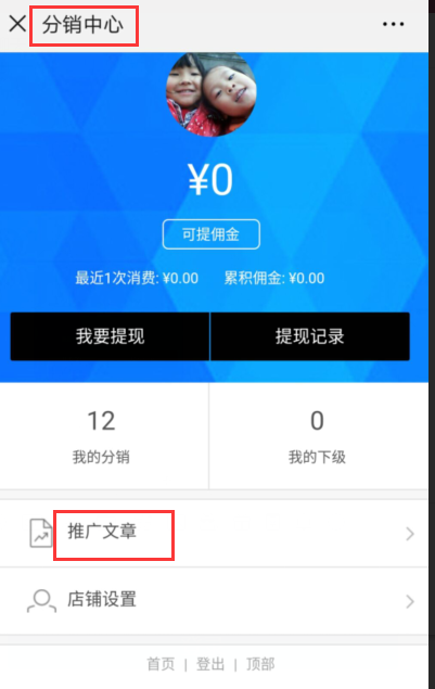 3.微信商進(jìn)入會(huì)員-》分銷中心-》點(diǎn)擊推廣文章進(jìn)行推廣(一般分享到朋友圈或轉(zhuǎn)發(fā)給好友)