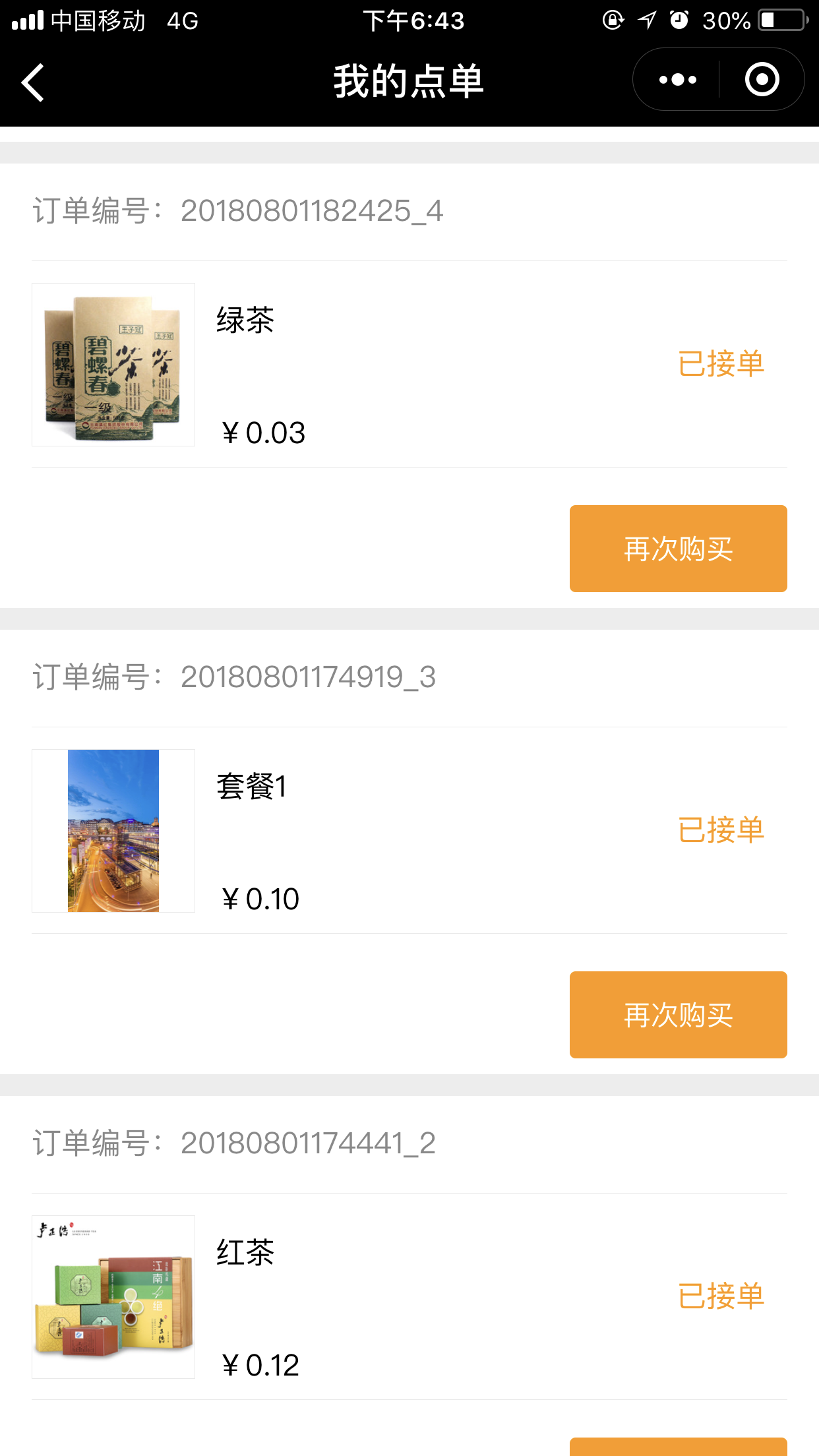 5.在“會員中心”中—“手機點單”中可以看到所有的訂單詳情,如圖所示: