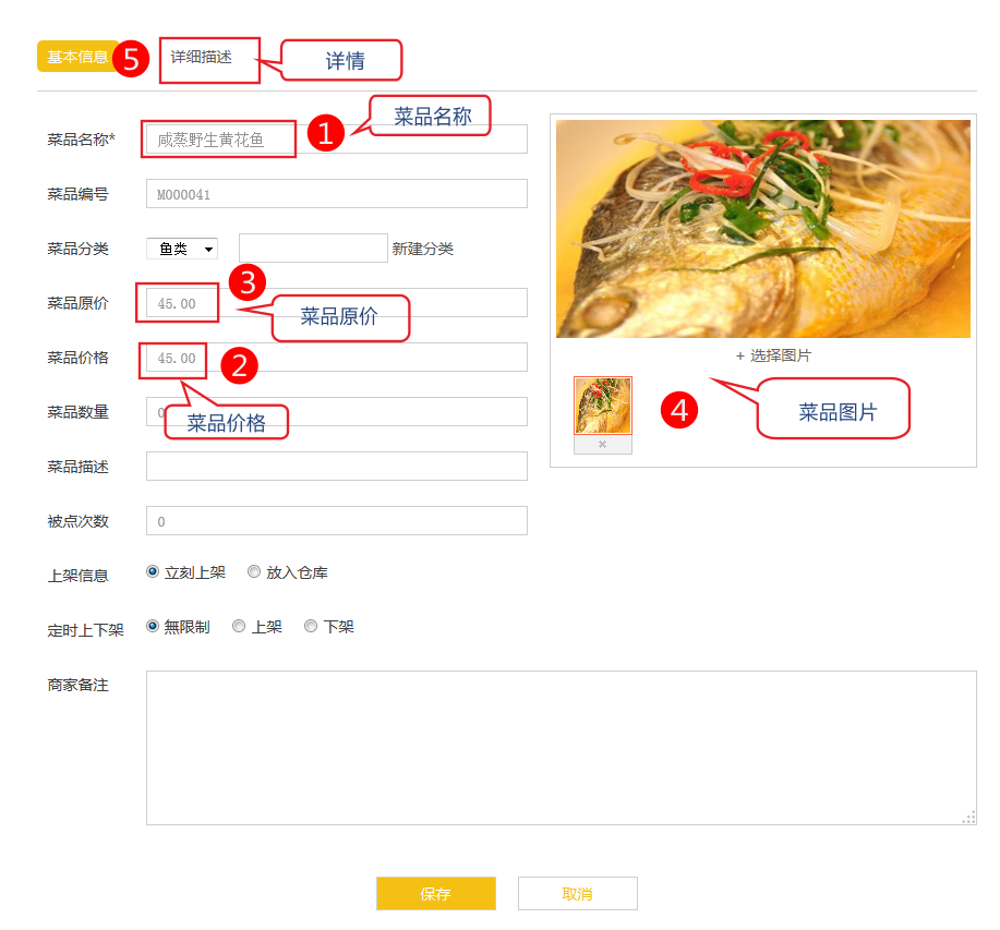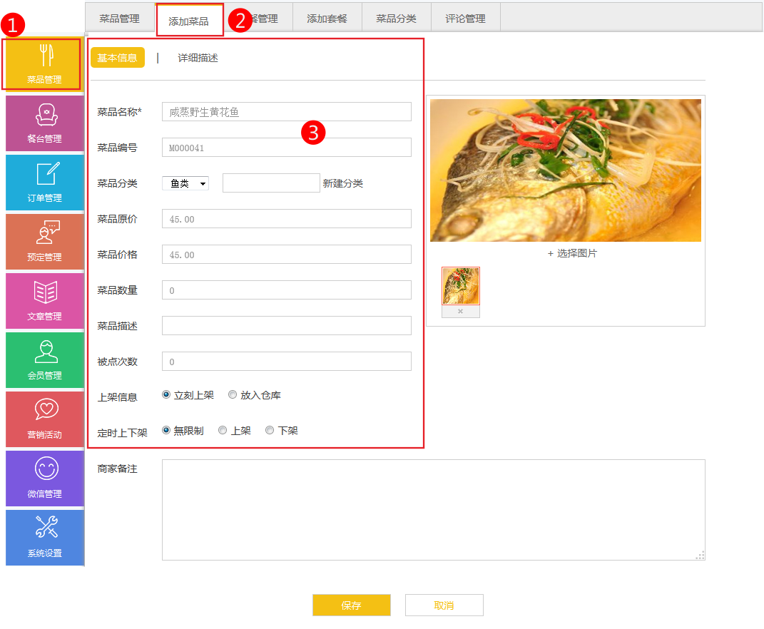 產(chǎn)品編號:添加菜品編號,可能會更好讓你管理你的菜品,特別是當(dāng)您的菜品已經(jīng)很多的時候。