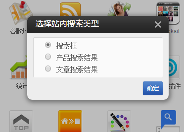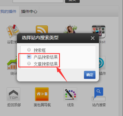 ①.添加站內(nèi)搜索插件,選擇搜索框,點擊確定。