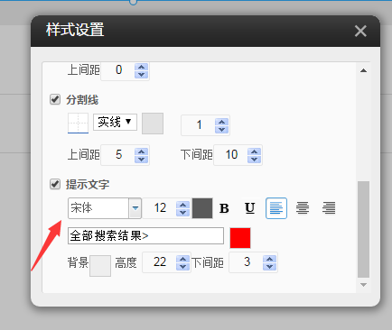 12.在建站編輯器中,拖入“站內(nèi)搜索”插件,點擊樣式設(shè)置,在樣式5、6、7、8、9中的設(shè)置項中增加“搜索范圍”的設(shè)置項,如圖所示: