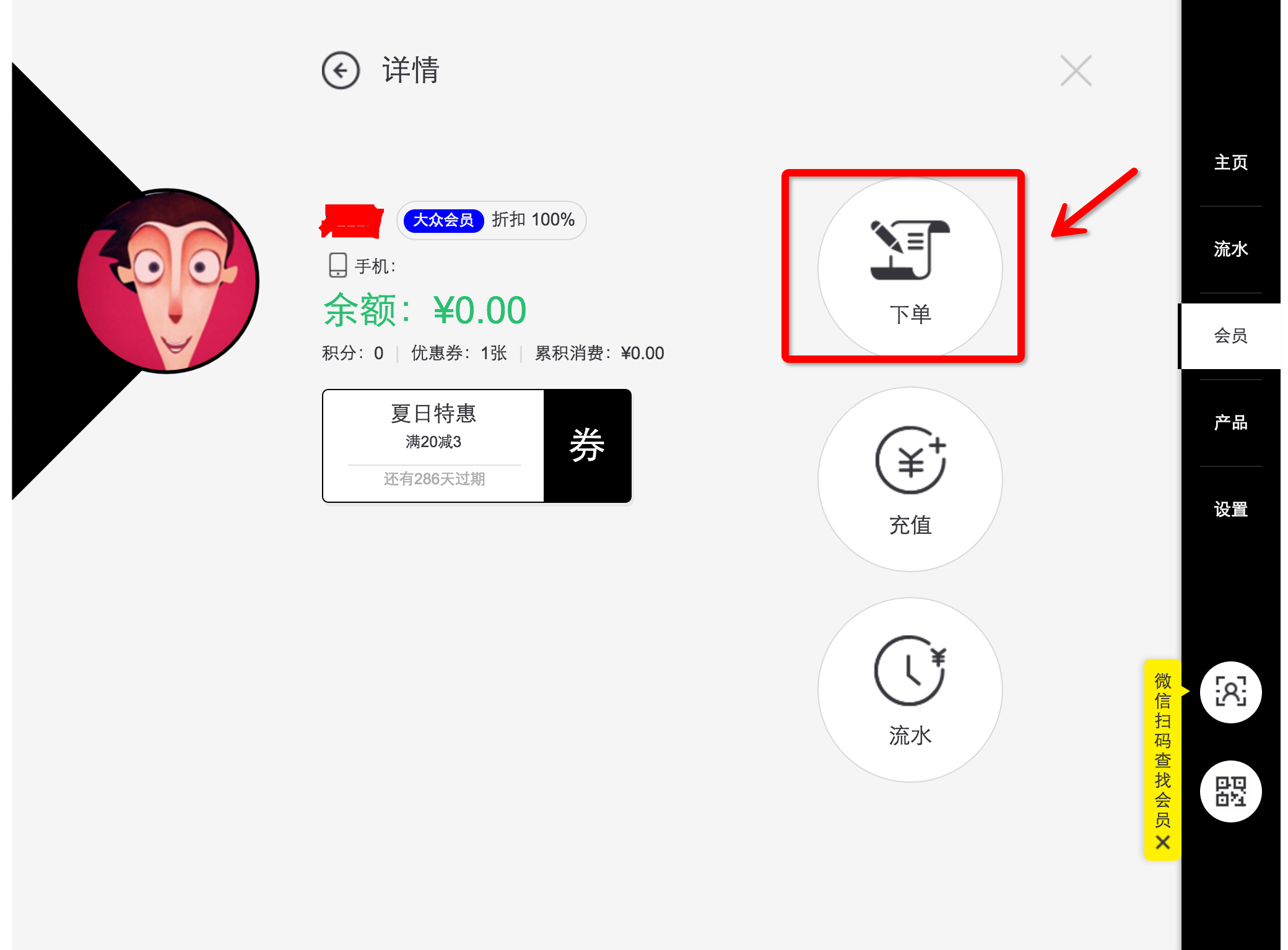 后臺(tái)下單即進(jìn)入某個(gè)會(huì)員的詳細(xì)頁(yè)面進(jìn)行下單,如圖