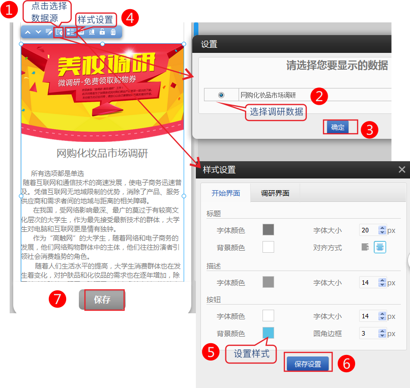5、選擇調(diào)研數(shù)據(jù)-、設(shè)置樣式保存即可