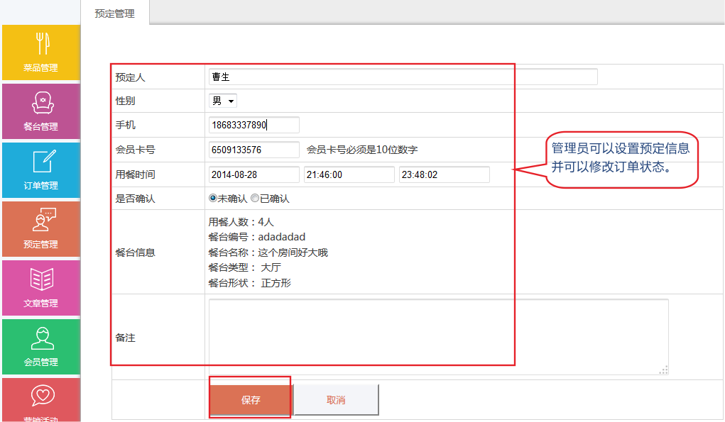 1.點(diǎn)擊預(yù)定管理,進(jìn)入預(yù)定管理頁面,會(huì)出現(xiàn)客戶預(yù)訂的信息;
