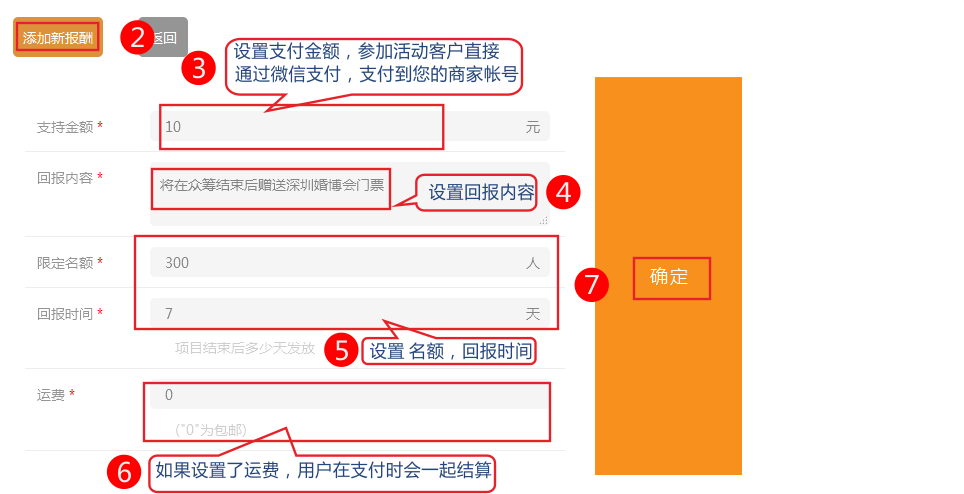 1.可以自行設(shè)置回報.(必填)