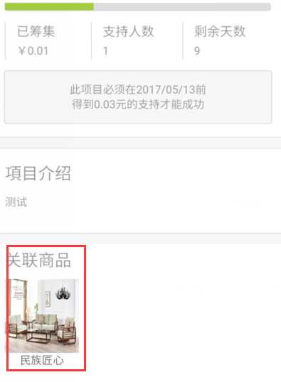 關(guān)聯(lián)商品 設(shè)置后顯示在從籌的頁面最下方,點擊產(chǎn)品用戶可以打開顯示對應(yīng)的產(chǎn)品詳情